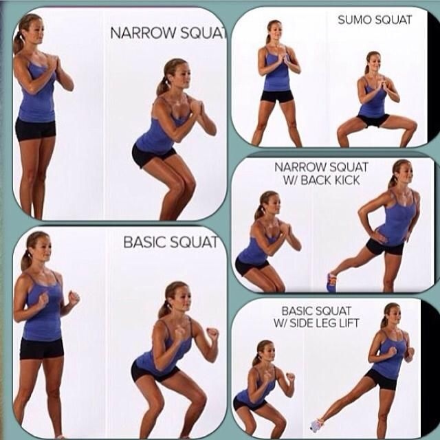 20×4 squats ( change squat every 20 reps…plié, narrow, basic, squat w/leg lift)